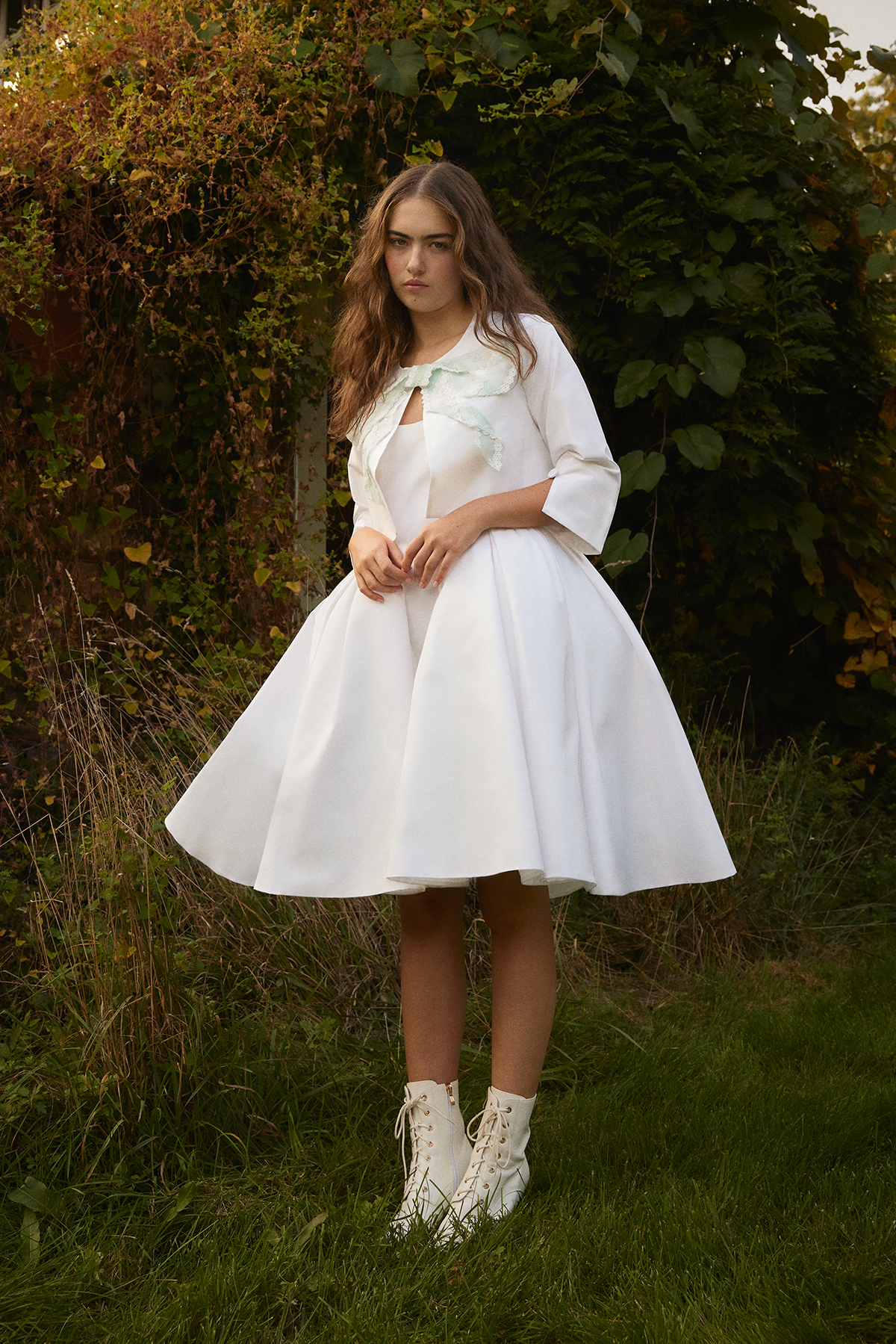 taffeta jacket with pigment printed organza bow