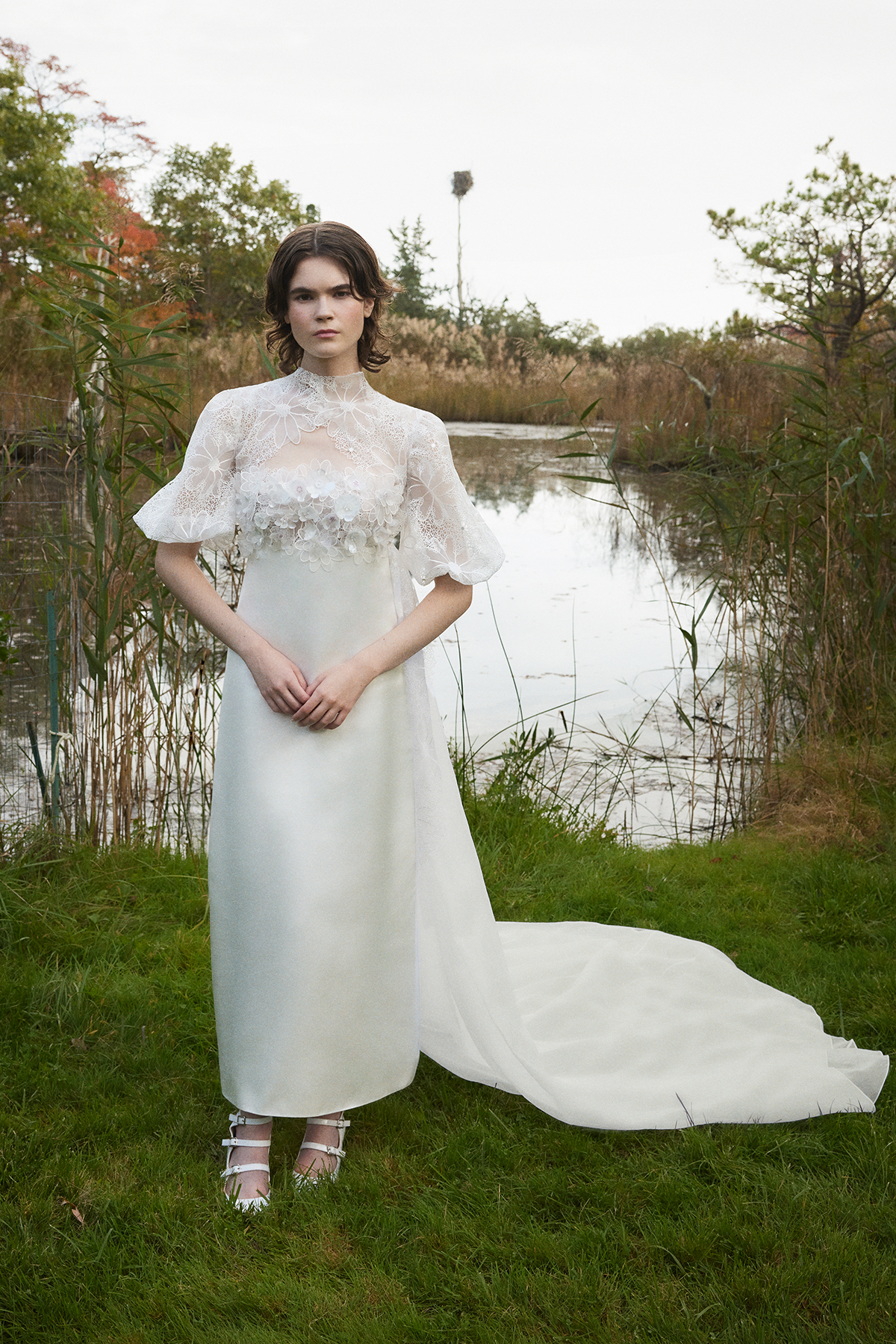duchess embroidered floral guipure lace gown with daisy appliqués