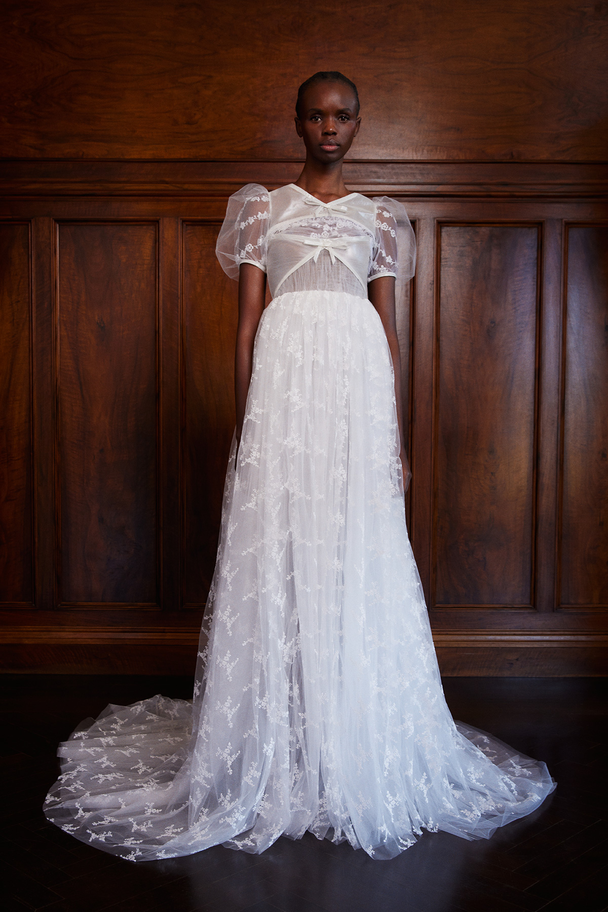 strapless gown with bolero in tulle and cellophane over glitter flocked flowers