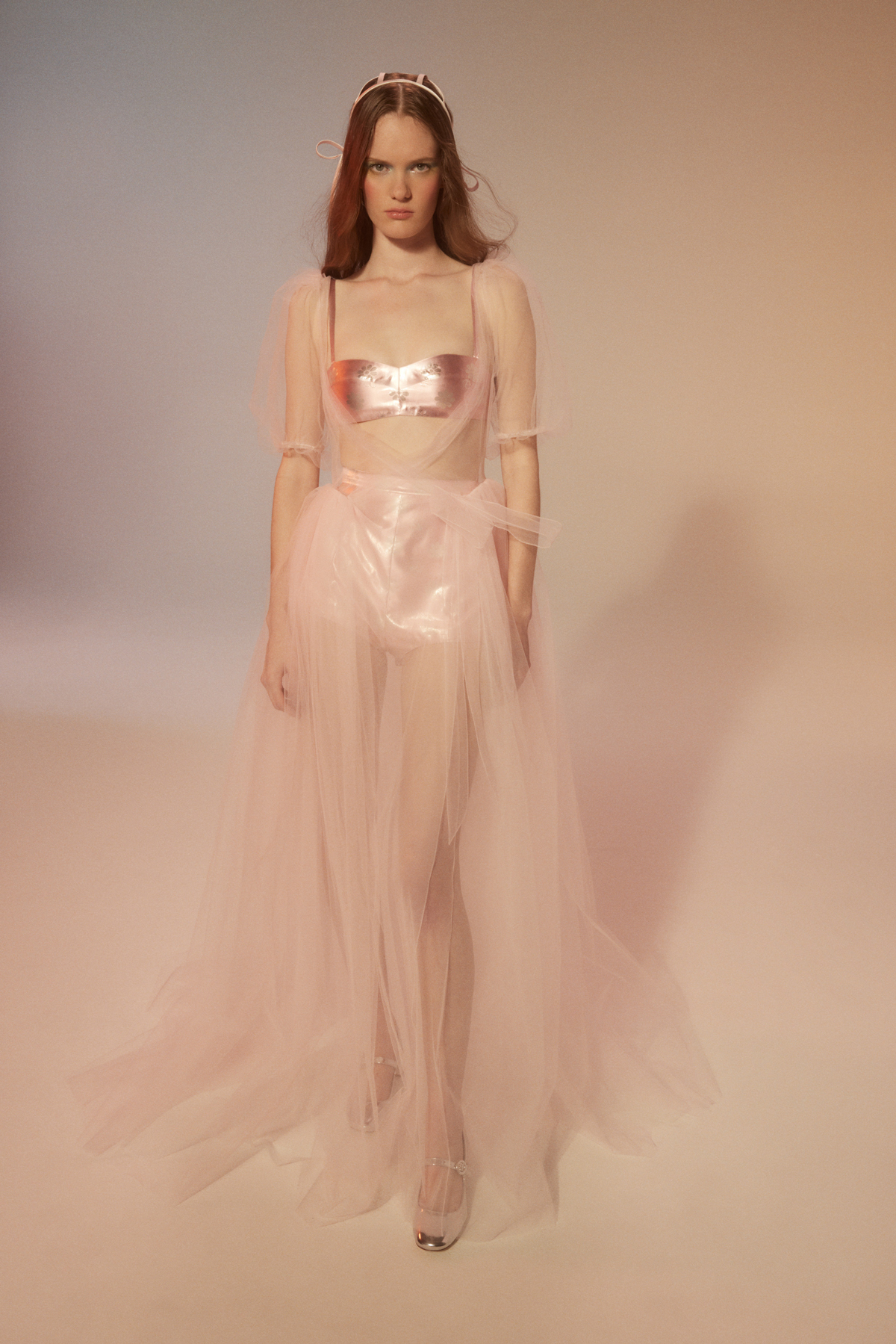 pink tulle coat with daisy lamé bralette and shorts