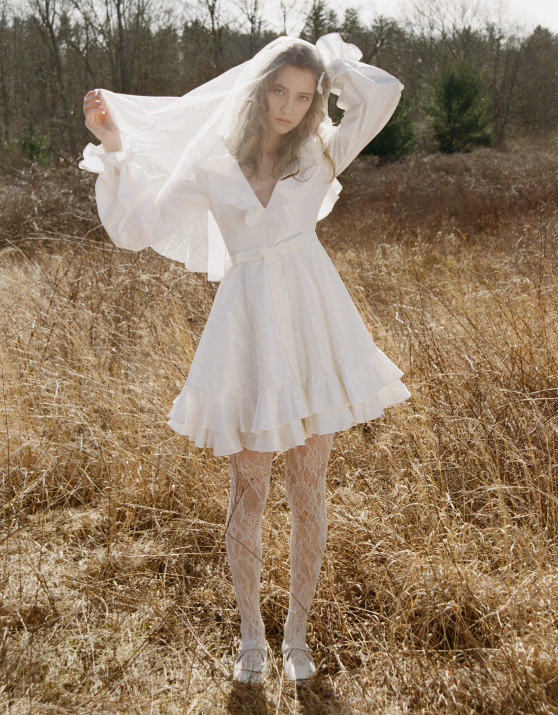 silk taffeta long sleeve cocktail dress with ruffles and velvet belt